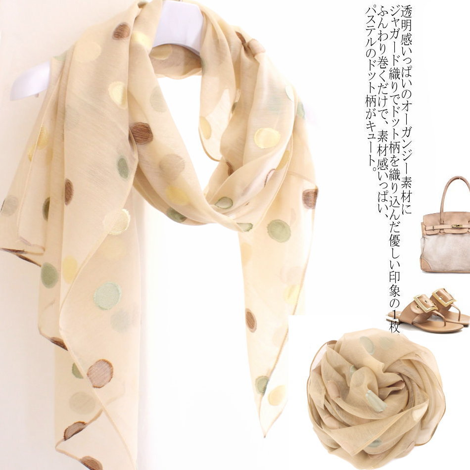 シルキーなオーガンジーシフォン ジャガード織りドット柄大判ストール。