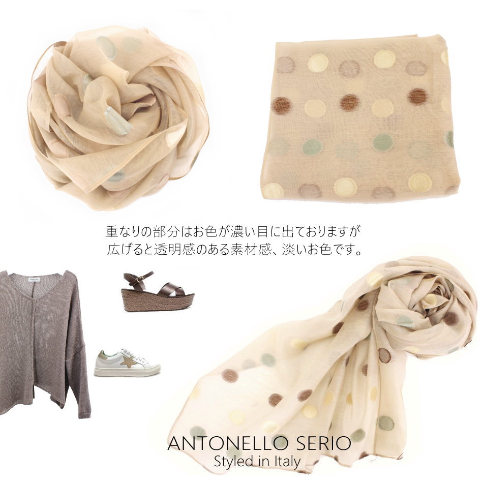 【ネコポス発送】【イタリア直輸入】【よりどり3個以上で各200円引き】イタリア ANTONELLO SERIO シルキー オーガンジーシフォン ドット柄 ジャガード 大判 ストール レディース UV対策 温度調節 01E56476