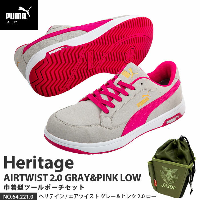 安全靴 作業靴 ヘリテイジ 25.0cm エアツイスト 2.0 グレー&ピンク ローカット 巾着型ツールポーチ付 PUMA(プーマ) 64.221.0 ( 2022モデル 最新作 Heritage スニーカー 作業用 ワーキングシューズ 安全シューズ 先芯入り JSAA A種 衝撃吸収 )