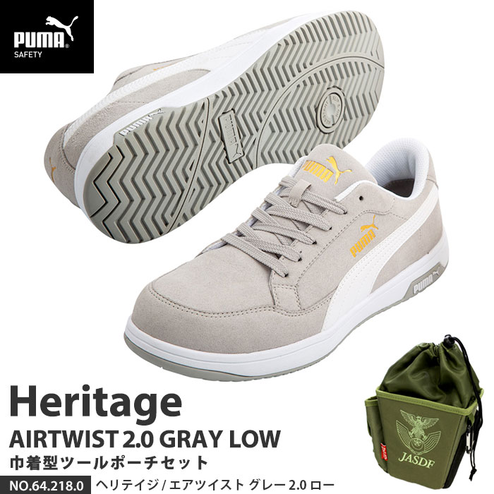 安全靴 作業靴 ヘリテイジ 25.5cm エアツイスト 2.0 グレー ローカット 巾着型ツールポーチ付 PUMA(プーマ) 64.218.0 ( 2022モデル 最新作 Heritage スニーカー 作業用 ワーキングシューズ 安全シューズ 先芯入り JSAA A種 衝撃吸収 )