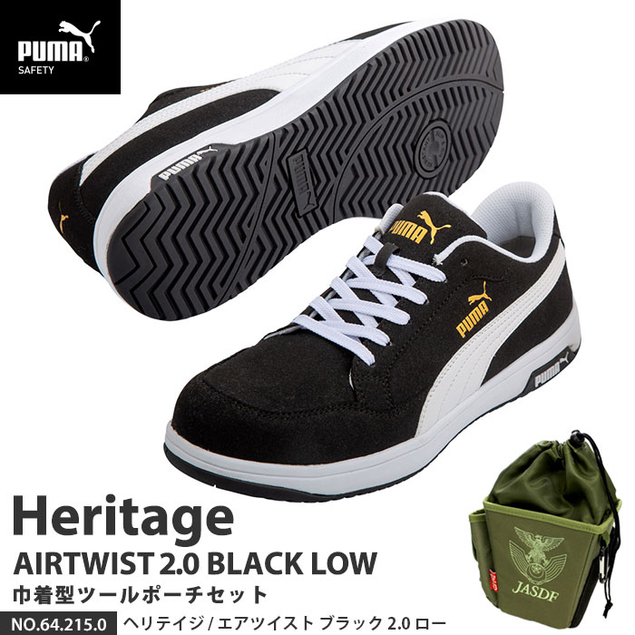 安全靴 作業靴 ヘリテイジ 25.0cm エアツイスト 2.0 ブラック ローカット 巾着型ツールポーチ付 PUMA(プーマ) 64.215.0 ( 2022モデル 最新作 Heritage スニーカー 作業用 ワーキングシューズ 安全シューズ 先芯入り JSAA A種 衝撃吸収 )