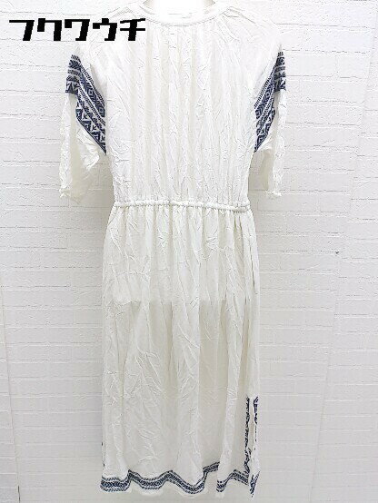◇ Ray BEAMS レイ ビームス 刺繍 ウエストゴム 七分袖 ロング ワンピース ホワイト レディース 【中古】