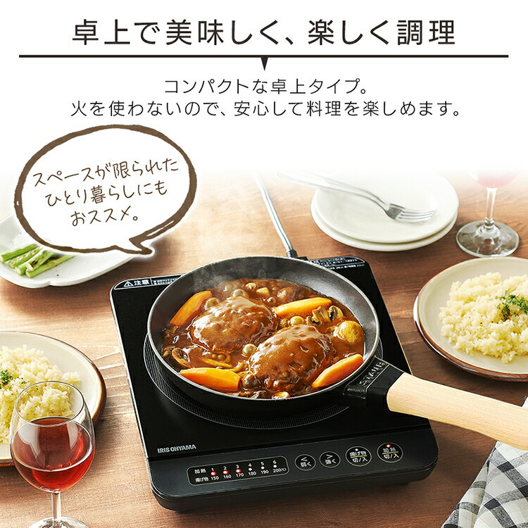 【5つの安全機能】 ・なべ検知機能 ・鍋なし自動OFF ・小物検知機能 ・切り忘れ自動OFF ・温度過上昇防止機能 [検索用:IHコンロ IHクッキングヒーター IH調理 調理 クッキング 電気コンロ 家電 台所 食卓 一人暮らし 安全 料理 加熱 食事 火力 鍋 ブラック 電気 テーブル 卓上 4967576373289] ★