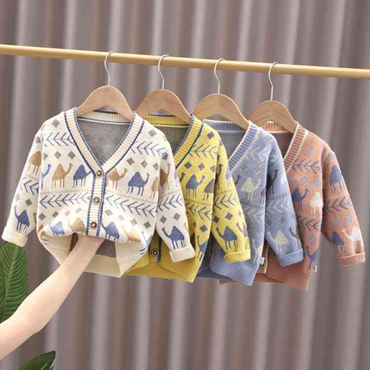 ニットカーディガン キッズ ニット カーディガン 女の子 男の子 vネック ニットセーター 羽織 長袖 子供服 おしゃれ 春秋 柄 前開き カーディ 送料無料 トップス アウター 新作 全4色 80-120cm 通学 通園 幼稚園