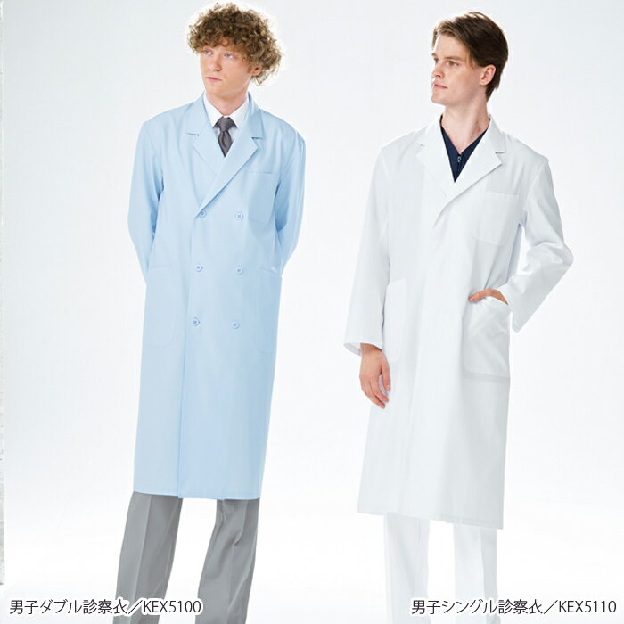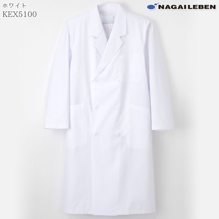 【最大2000円クーポン配布中(9/4 20時〜)】 ナガイレーベン 白衣 ドクターコート ダブル診察衣 KEX5100 メンズ ホワイト ブルー 長袖 W型 Naway 医療 病院 制服