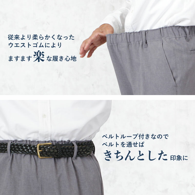 スラックス メンズ シニアファッション おしゃれ ボトムス シニア 春 夏 春夏 60代 70代 80代 男性 紳士服 紳士 ズボン パンツ「ウエストゴムのきつくない」きちんと見える日本製 総ゴムスラックス 股下68cm ギフト 誕生日 敬老の日 プレゼント ギフト