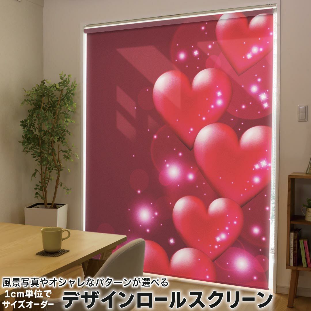 1cm単位サイズオーダー ロールスクリーン ロールカーテン オーダーメイド タチカワ 日本製 間仕切り カーテン 採光 非遮光 目隠し UVカット カーテンレール チェーン式 プル式 000972 ラブリー ハート キラキラ