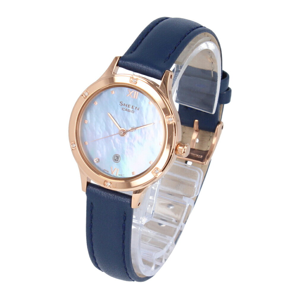 SSで使える5%OFFクーポン配布中!CASIO カシオ SHEEN シーン腕時計 時計 レディース クオーツ アナログ 3針 ステンレス レザー ネイビー ピンクゴールド シェル マザーオブパール ブルー SHE-4546PGL-2Aプレゼント ギフト 1年保証 送料無料