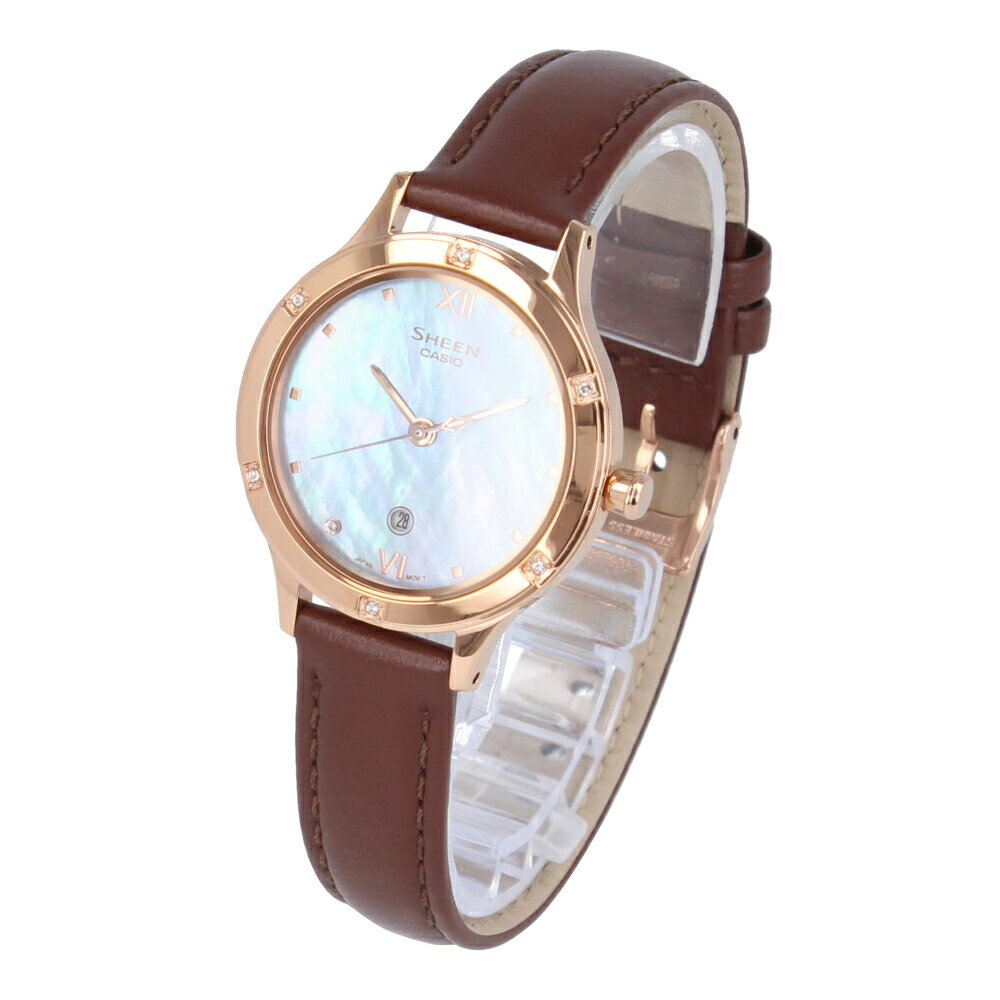 SSで使える5%OFFクーポン配布中!CASIO カシオ SHEEN シーン腕時計 時計 レディース クオーツ アナログ 3針 ステンレス レザー ブラウン ピンクゴールド シェル マザーオブパール ブルー SHE-4546PGL-6Aプレゼント ギフト 1年保証 送料無料